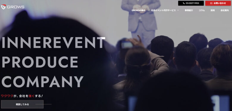 株式会社GROWSは、年間100件以上の社内イベントを手掛ける会社です。コミュニケーションを活発にさせる社内イベントの企画・運営を得意としており、社内交流会の企画・運営も豊富なノウハウでサポートしてもらえます。スピーディーに準備を進めてもらえるので、イベント開催日が近い場合でも相談可能です。