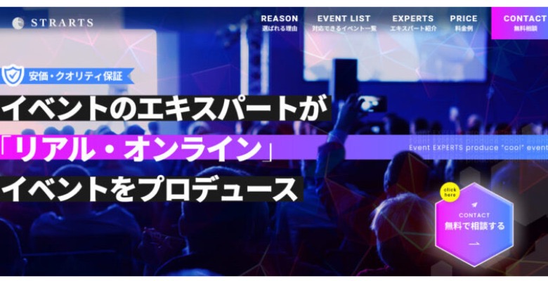 過去実績・担当者レベルが高いイベント会社に依頼したいのであれば、株式会社ストラーツをおすすめします。イベントの実績はもちろんのこと、業界経験の豊富なベテラン担当者がつくためレベルの高い提案が期待できます。