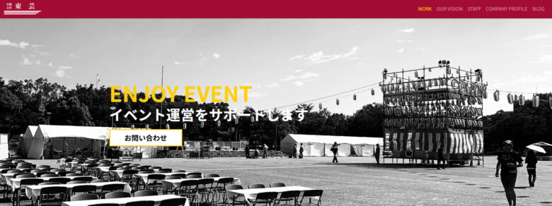 株式会社トップワールドは、大型テントやステージなどの施工も請け負っているイベント会社です。イベント企画・運営はもちろん、会場設営の実績も豊富なため、野外ステージなどのイベントでも安心して任せられます。大がかりな展示会や祭りイベントなど、規模の大きい工事が必要なイベントを開催する場合におすすめです。