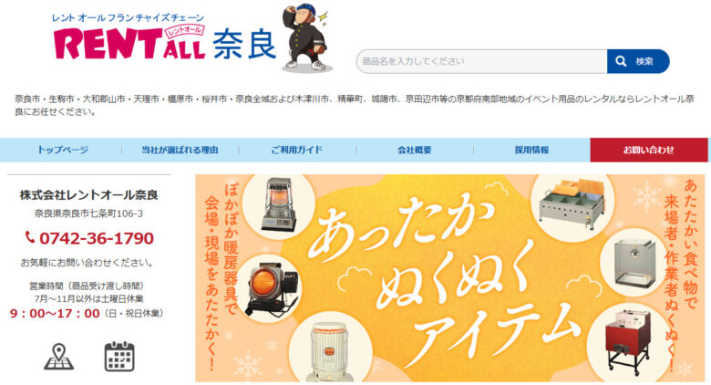 | 問合せ先 | https://rentall-nara.jp/contact/ |