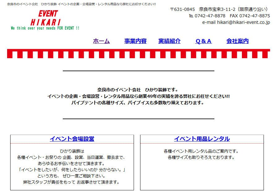 ひかり装飾株式会社は、奈良県を中心として近畿各地、四国地方、関東地方にて様々なイベントのサポートを行っている会社です。