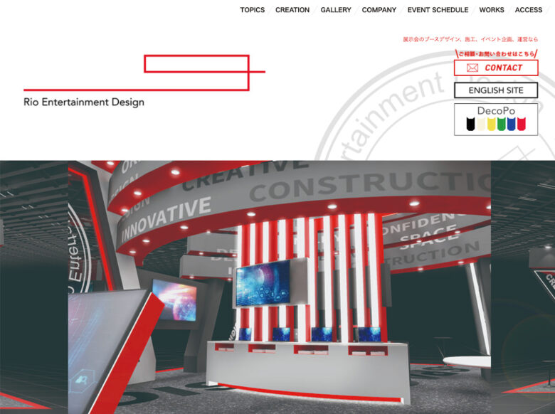 株式会社リオエンターテイメントデザインは、展示会ブースを「足を止める仕掛け」まで落とし込んで設計してくれる装飾業者です。ブースの企画・運営・設計・施工まで対応しつつ、プロジェクションマッピングなど「演出要素」も提案できるため、製品の世界観づくりや体験型の訴求に向いています。看板デザインや電飾の活用など「見栄えするブースづくり」にも強いです。