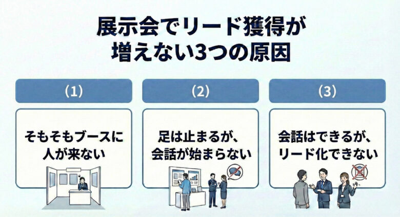 展示会でリード獲得が増えない3つの原因と解決策