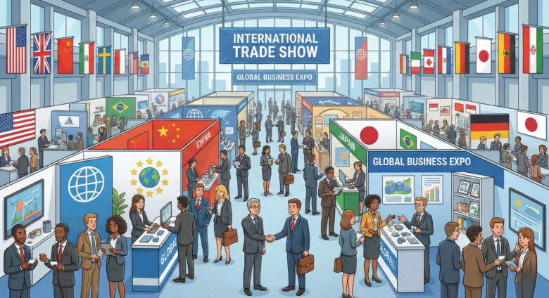 さらに、展示品や販促物の輸送・通関、破損や遅延に備えた代替案の準備、現地での言語対応(通訳・翻訳)なども発生します。
