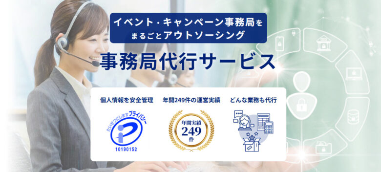 | 対応可能なイベント例 | イベント事務局、キャンペーン事務局、イベント、資格試験ファンクラブ、セミナー、印刷発行代行 |