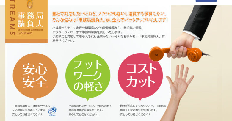 事務局請負人は、株式会社ストリームスが手掛ける万能型の代理サービスです。